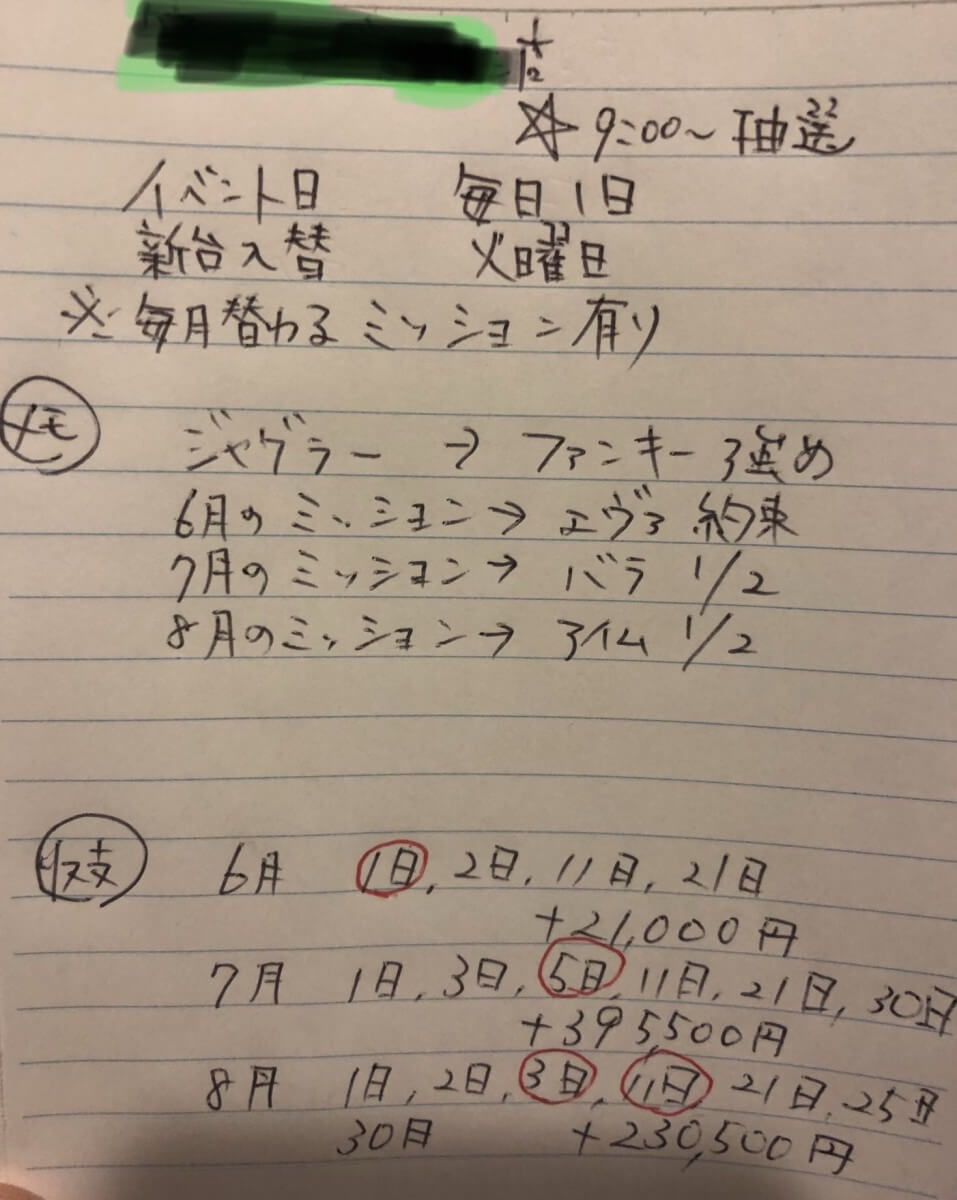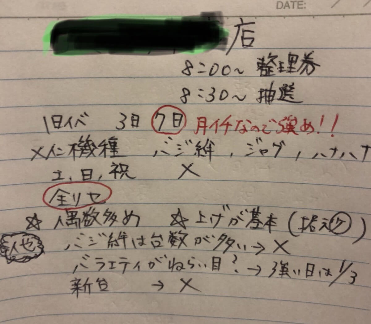 ホール状況は毎日変化するので、その度に更新されていくこのメモたち。