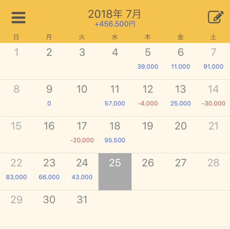 そして、収支とそのホールに行った日付(赤〇はマイナス収支だった日)を記していました。