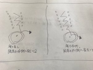 同じ風車の内側へ流れる玉でも、風車の奥(釘に近い方)へ絡む時と、風車の外側へ浅く絡む時があります。