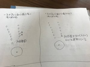 ・風車に絡んだ後の玉の飛ぶ距離を見る