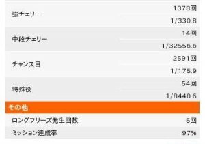 以下は私が引いた全14回の中段チェリーの状況&特典です。