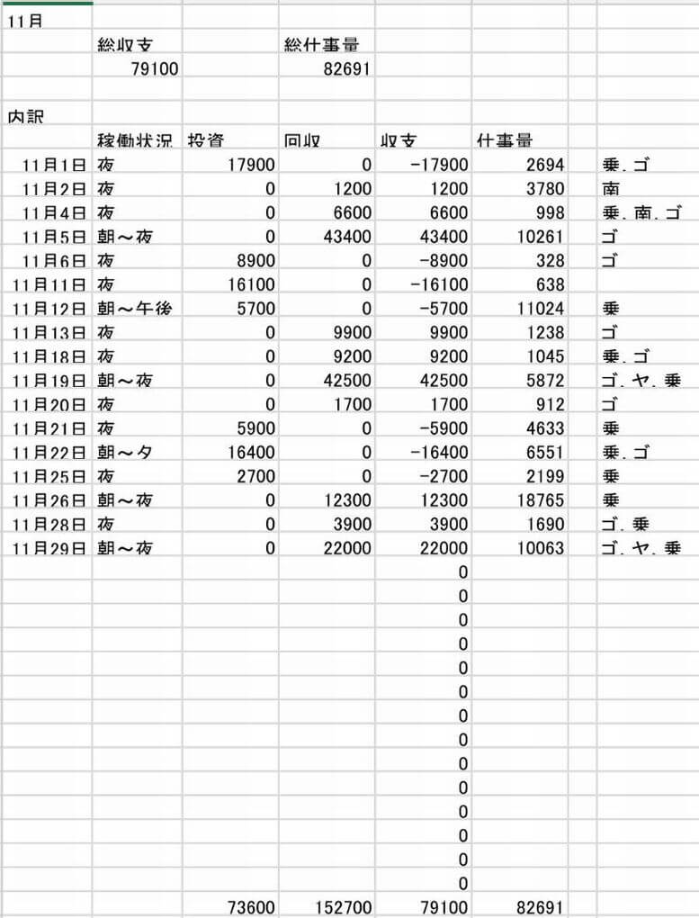 さて、それでは11月の稼働報告に参ります。