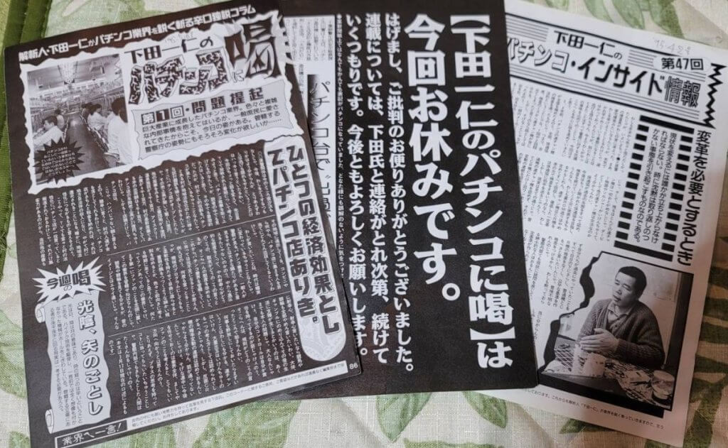 これで当面は余計なことをしたり、喋ったりはしなくなるだろうというのが警察庁生活安全局の読みだったのでしょうが、そのアテは外れたことになります。下田氏を逮捕したのは千葉県警ですが、中ではVIP扱いだったと言ってましたね。面白い話として、調書を取られていた際、押収した資料を見て担当官が「これはこの通りに動くのなら、朝イチで打ったらすぐに大当りになるんですか」と言うものだから下田氏が「そうよ。すぐに当たるんよ」と返したら、「それはいいですねぇー」と笑いながら言ったとか何とか。取り調べは常時和気あいあいとした中で行われ、ドラマでよく見かけるような威圧的な雰囲気は微塵もなかったそうです。