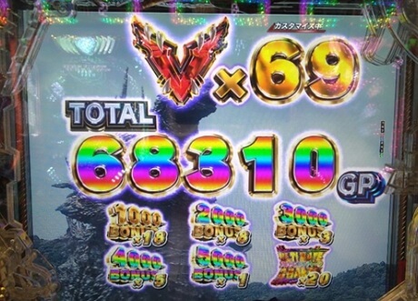パチンコ:e GODZILLA7 TYPE-CRASH(ニューギン):68,310玉 ※表示