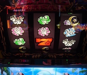 中段にピンク色のシンボル(雲?)がテンパイしたらチャンスとなり、右リールの4択に正解すれば「神撃目=MB入賞」となります。