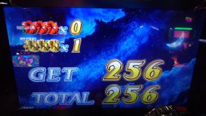 設定6ですと1/55.8程度でチャンスが訪れるのですが、まず期待できないので、せめて設定1の確率分母である128回転までにはチャンスが到来して欲しいところですね。