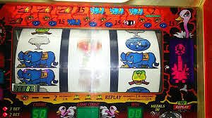 慎重に中リール上段に象をビタ押し、15枚役(BIG同時成立)を否定、象揃いも否定。設定6か否かが決まる純ハズレを引き、液晶でルーレットが始まるこの日一番のハイライトが早くも訪れた。