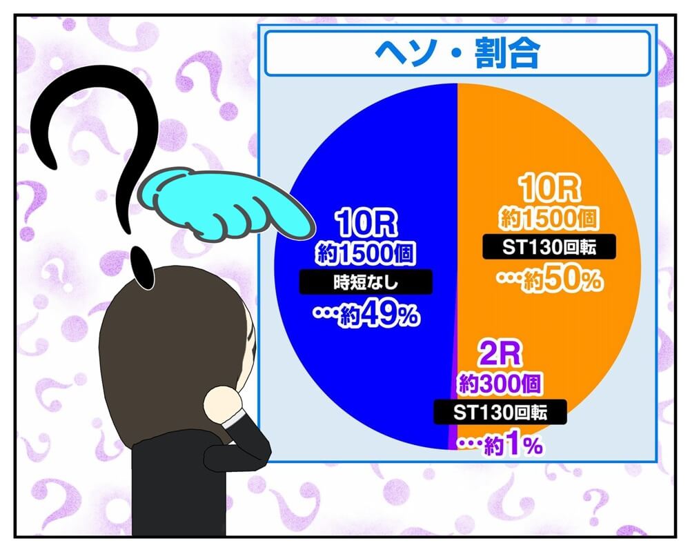 時短なし、ハイハイ。10Rで1,500玉、ハイハイ。あれっ。300個どこ?変じゃね変じゃね?