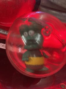 いきなりギャリン音と共に星役物が動くも、ガセもあるのですね。そして400円使ったあたりでメガポラリス作動から確変が大当たりしました。内部循環の出玉が5000個になると景品が出るという手書きのPOPあり、3連の途中で達成。足元にカプセルに入った景品が出てきましたが、同時に玉が飛ばなくなり大当たり中のラウンドがそのまま消化。後で分かりましたが、100円を追加すれば玉が発射されたようでした。