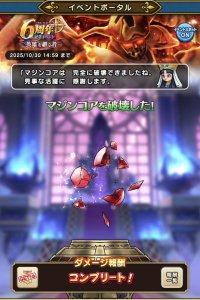 ホントは先週の月曜日には6周年イベントの【神の軍団討伐】もマジンコアを完全に破壊する事が出来ていて、現在は『6周年SP心珠』を集める為だけに、赤いヤツらを狩っているのですが、『天裂く凶刃』の心珠のSがぜーんぜん出ない、Aは出たんだけどねー。乱入を待ってた方が効率良さそうなんだけど、好きになれないんですよ、あの手のやつ。