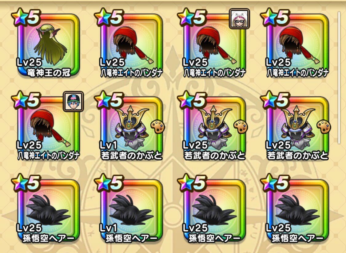 因みに同イベント時に開催されていた他のガチャは【如意棒】と【ホイポイカプセル】だったんですが、ホイポイ~の方は『ブルマの演出が長いし良くワカラン』という理由で無償チケット分しか廻さずで何も出ず。如意棒に関しては当時、無償チケットは当然ながら、全力でジェムもマイレージポイントも突っ込んで廻した記憶があるんだけれど、ズラ(頭防具)ばかりが出るわ出るわ。
