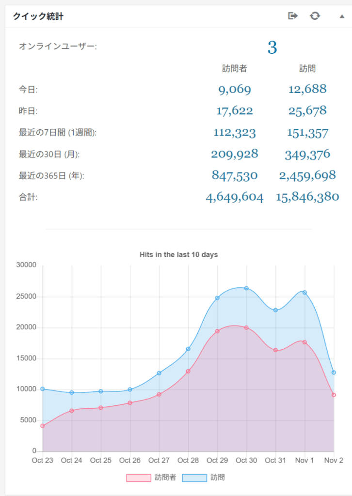こちらはワードプレス上で見られるユニークユーザー数とPV数なんですが……サイトを始めて2~3年の頃は、確かUU数1000くらいがベースでそうした期間が長かったんですが、この1~3年でじわりじわりとベースアップしていて、これだけ見ると中規模ブログサイトくらいの存在感があることになります。