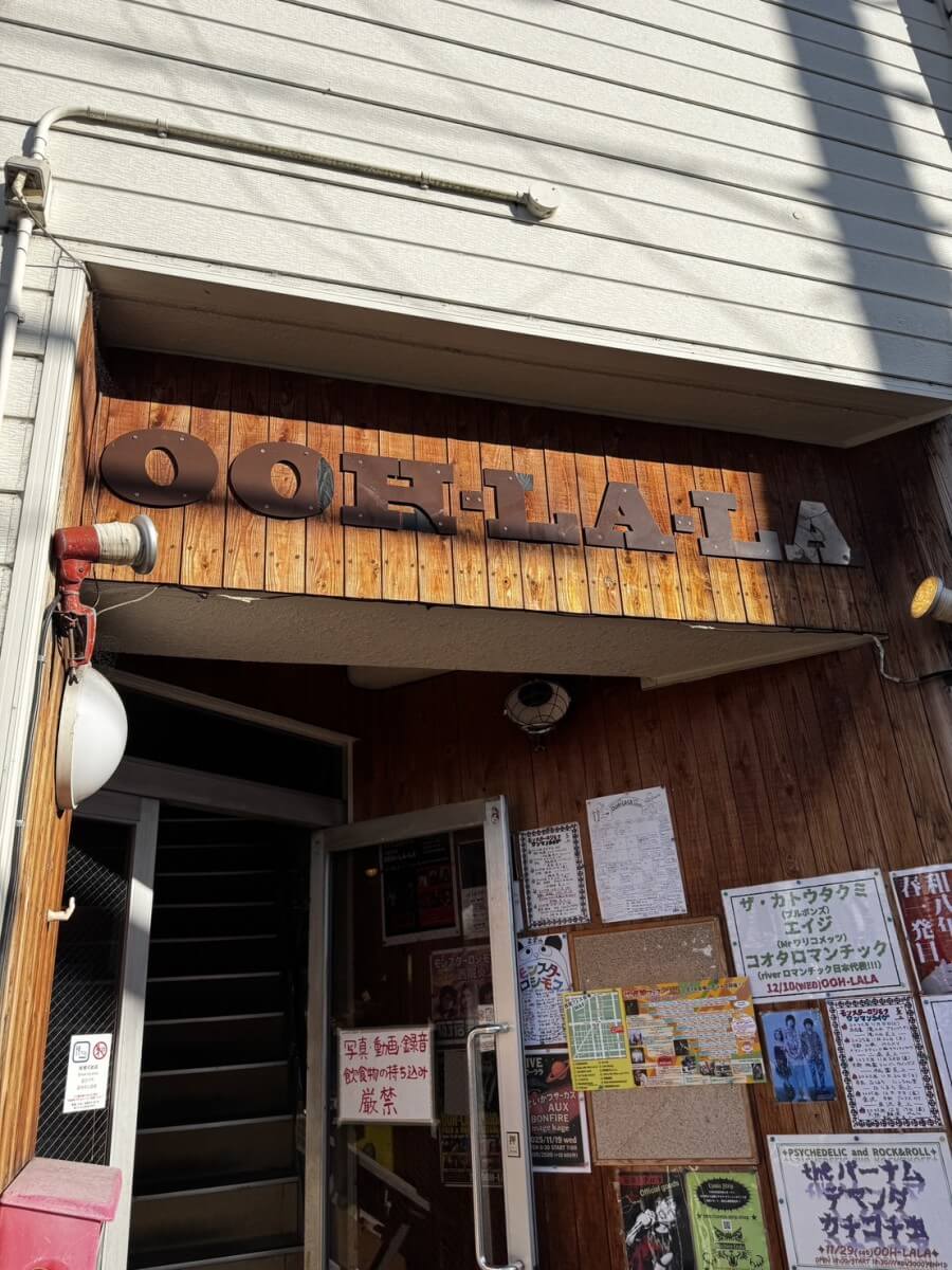 我らがテンゴが出演するステージは『西院OOH-LA-LA』(ウーララ)さんは、住みたい飲食店NO.1に選ばれた(夾竹ランキングなのは言うまでもない)西院ネガポジのスグ近所だったのですが、前のバンドのファンも沢山居るだろうし、取り敢えずネガポジを覗いてみようかと立ち寄ると、店の外まで人が溢れる盛況ぶり、建物のドアの内側に入るのも諦めましたw