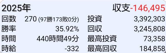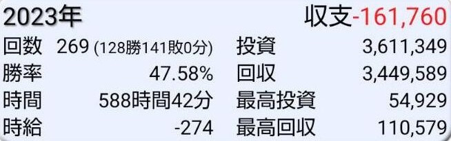 負けた年でもちゃんと収支を付ける、素晴らしいです。