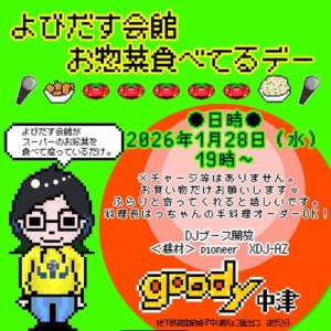 だからってワケでも無いんですが、本日の19時から大阪の中津駅(メトロの方ね)の近くにあるgoodyさんで妙なイベント?が開催されるんだってさ。